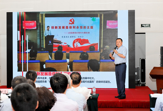 王兴晔把自己知识储备和实践经验相结合,生动讲解全球知名相关企业及其“拳头产品”,回顾了保利国际的发展历程;随后,引用“两弹元勋”邓稼先的事迹,深情讲述了保利国际人开拓市场的感人事迹。最后,他通过视频形式,生动展现了保利国际人不忘初心、承担使命,生命不息、拼搏不止的精气神,打动人心、催人奋进。